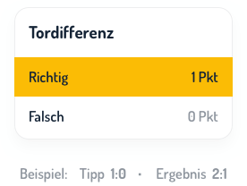 Sagst du die korrekte Tordifferenz voraus, erhältst du einen Punkt. Bei falscher Tordifferenz gehst du in dieser Kategorie leer aus.